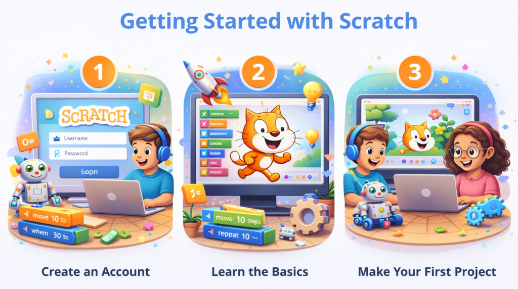 Scratch programming is an easy way to learn how to code because it uses colorful blocks instead of typed commands. You can drag and snap the blocks together to make characters move, talk, and interact in fun ways. With Scratch, beginners can quickly create simple games, animations, and stories without needing any coding experience. It helps learners understand basic ideas like repeating actions, reacting to events, and making decisions in a program. Because it is simple to use and fun to explore, Scratch is a great starting point for anyone who wants to learn how programming works.